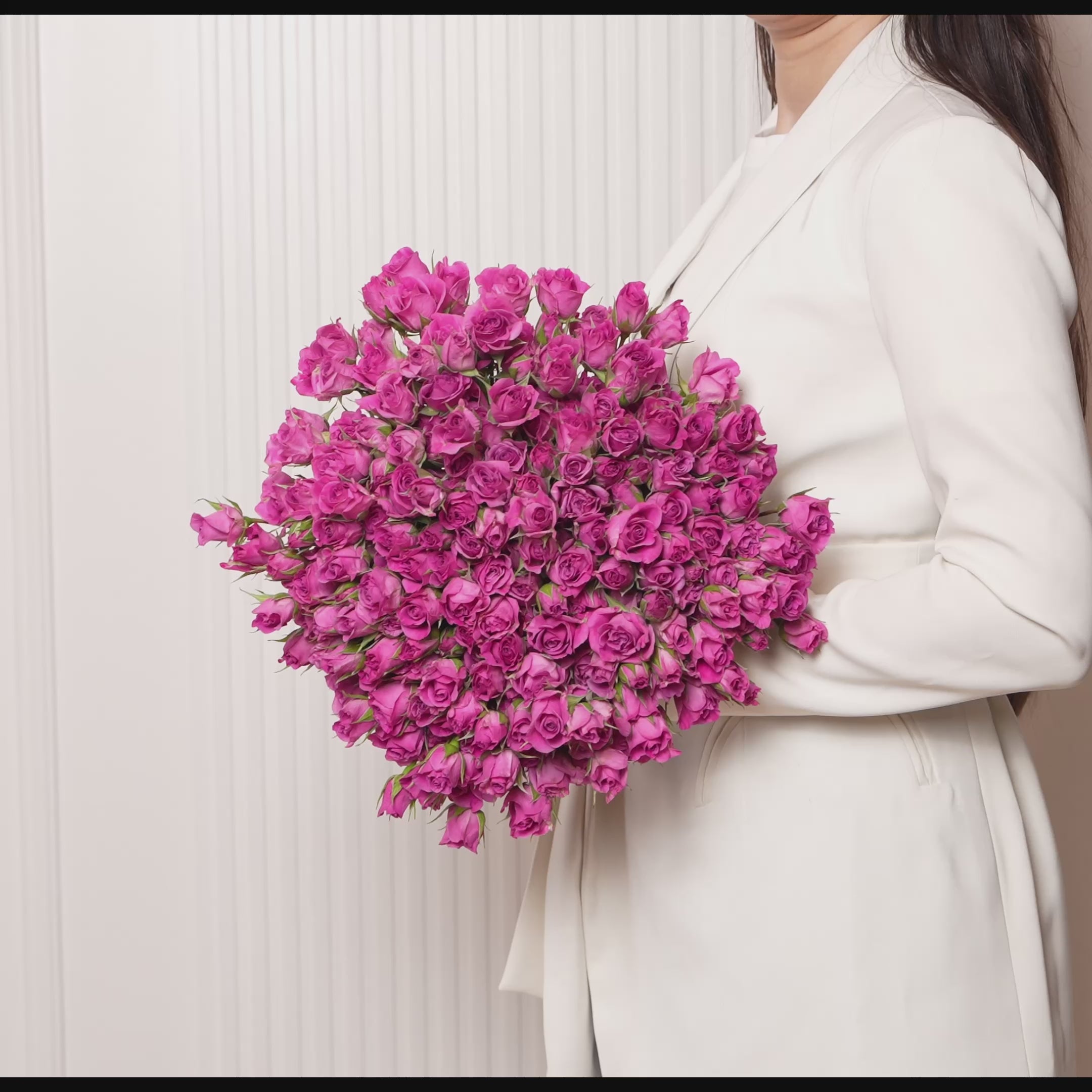 Bold in color, soft in texture—Violetta is pure charm in bloom. This full bouquet of vibrant 50 stems pink baby roses creates an irresistibly plush effect that feels both youthful and luxurious. Perfect for birthdays, just-because gestures, or anyone who loves their flowers with personality and punch.