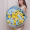 Radiant as the morning sun, Solenne is a joyful fusion of yellow garden roses, ivory baby roses, and sky-blue hydrangeas, accented with light stock blooms. This bouquet glows with optimism and serenity, perfect for celebrating life’s brightest moments.