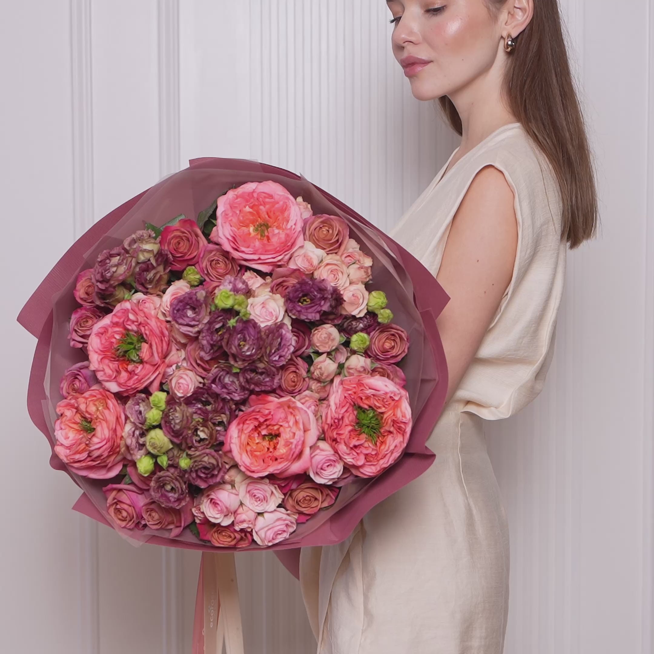 Intense and romantic, Isolde is a masterpiece of passion. Featuring lush coral garden roses, rich burgundy-toned baby roses, and soft blush accents, this bouquet exudes drama and timeless elegance. It’s the perfect choice for bold confessions, anniversaries, or when you want your love to be unforgettable.