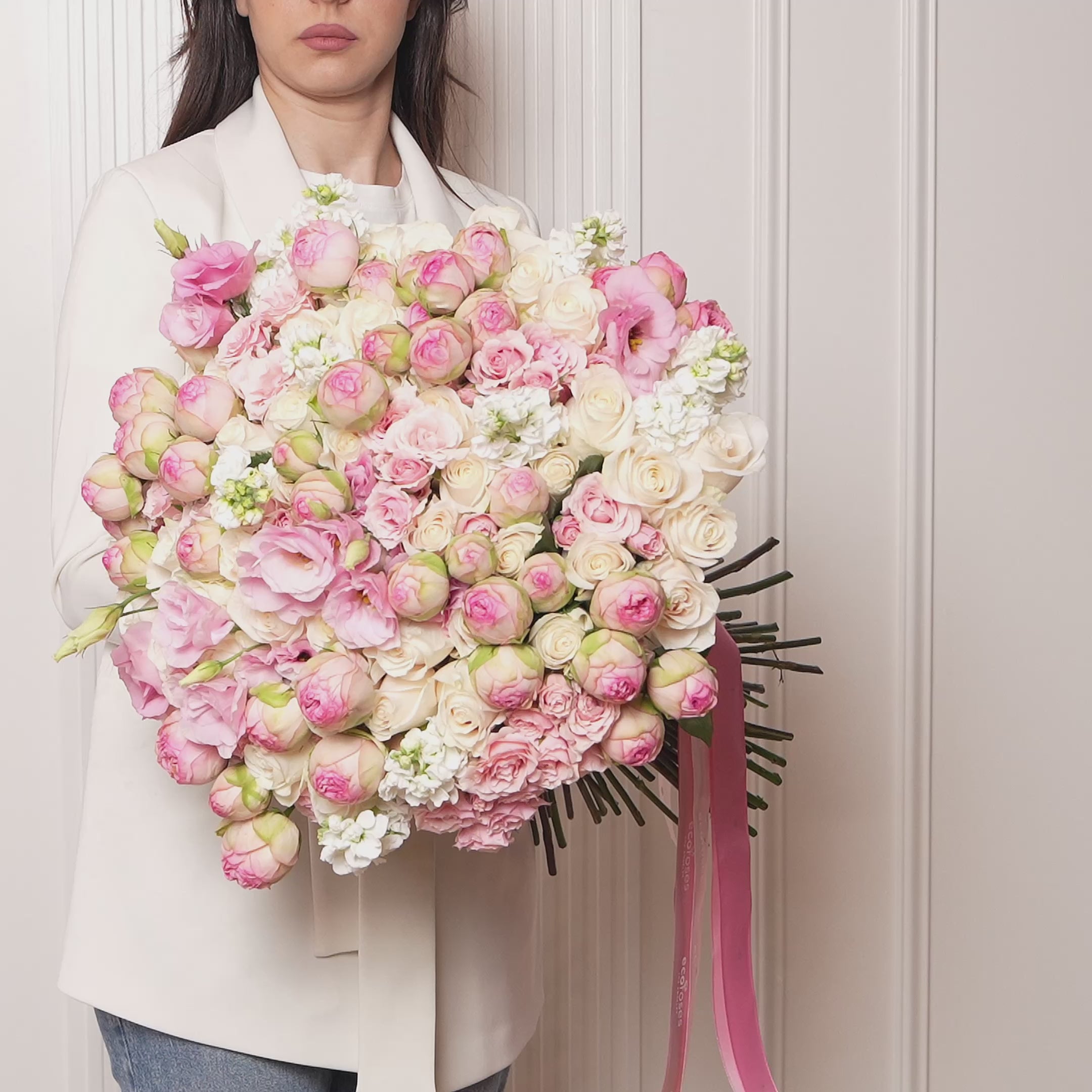 Delicate as a sigh and radiant as morning light, Eloise is pure enchantment. With pale blush garden roses, creamy baby roses, soft lisianthus, and white stock, this bouquet feels like a love letter in bloom. Perfect for weddings, anniversaries, or when words fall short and only beauty will do.