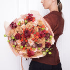 Vittoria is a striking tribute to earthy richness and autumnal warmth. Featuring a symphony of terracotta Ecuadorian roses, burnt orange spray roses, and mocha-toned roses, the bouquet is accented with fresh green rosebuds and dramatic burgundy eucalyptus. Every stem speaks of bold elegance — perfect for someone with depth, strength, and undeniable presence.