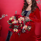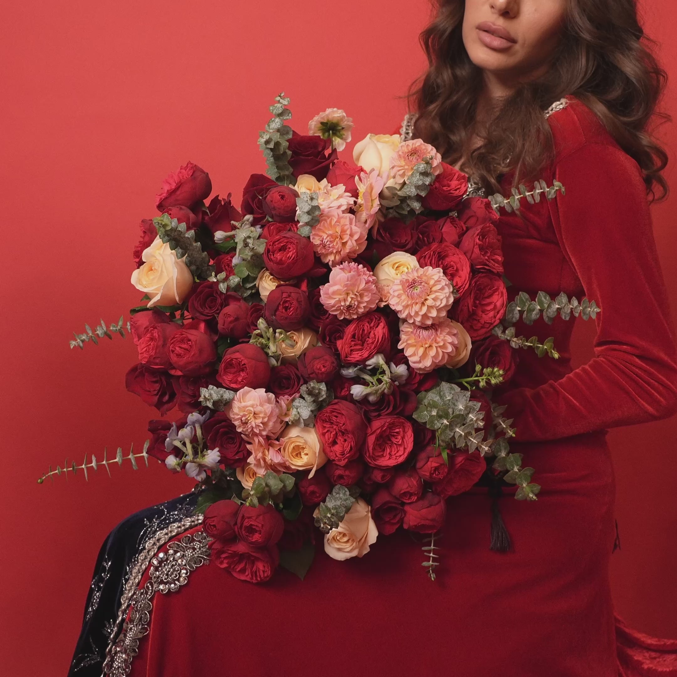 Mariam celebrates enduring love and devotion. Deep red roses meet soft peach and blush accents, creating a warm and iconic bouquet with emotional depth. Designed to express gratitude, affection, and classic romance, this arrangement blends tradition with modern luxury.