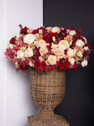 A luxurious autumnal palette inspired by the rolling vineyards and sun-soaked estates of Tuscany. Toscana Rustica features premium garden roses, caramel-toned roses, and dramatic red eucalyptus — a bold tribute to rustic Italian romance. Earthy yet refined, this arrangement is perfect for fall weddings, vineyard celebrations, or unforgettable grand gestures.